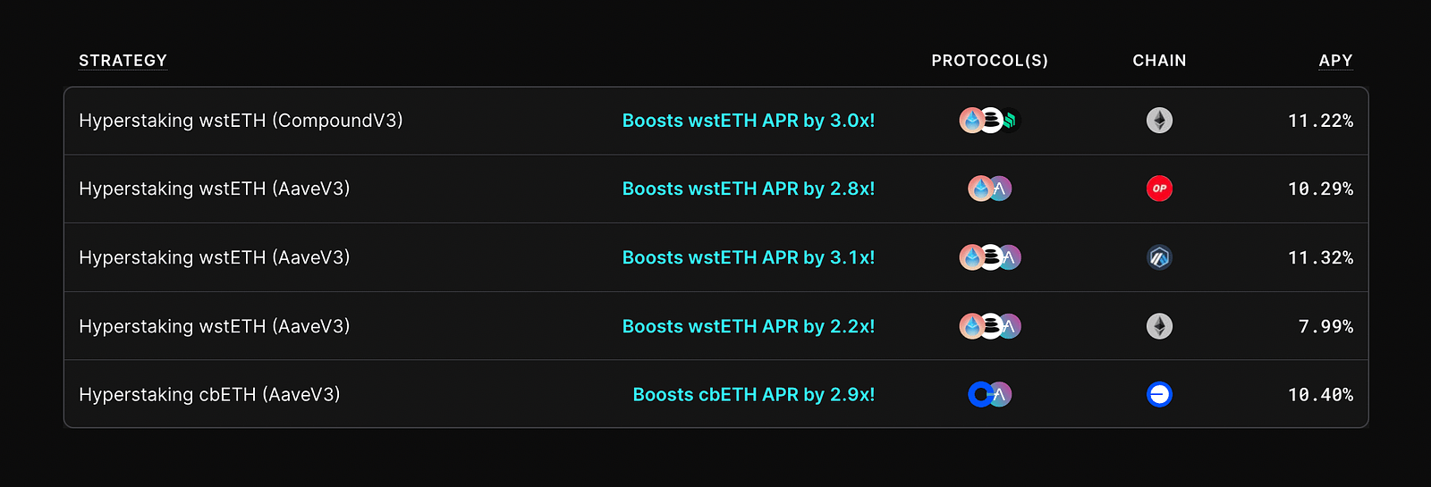 Definitive’s advanced Hyperstaking strategies are available on 6 chains and consistently achieve 2x-5x the staking yield of ETH through maximal capital efficiency and refined execution (see Execution & Edge below).