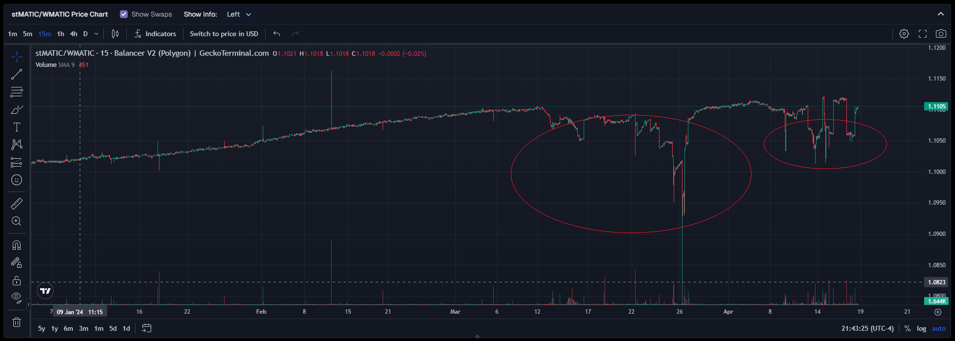 Liquid Staking Derivatives (LSD), including assets like stETH, stMATIC, and sAVAX, are often misunderstood as being pegged to the underlying asset while simultaneously appreciating through rebasing. However, LSDs are constantly traded at market prices, although they can be redeemed based on their rebased value. When the market price diverges from the "peg," users may experience temporary negative rewards. This discrepancy presents an arbitrage opportunity for the market to correct and eventually realign the LSD with its intended "peg."